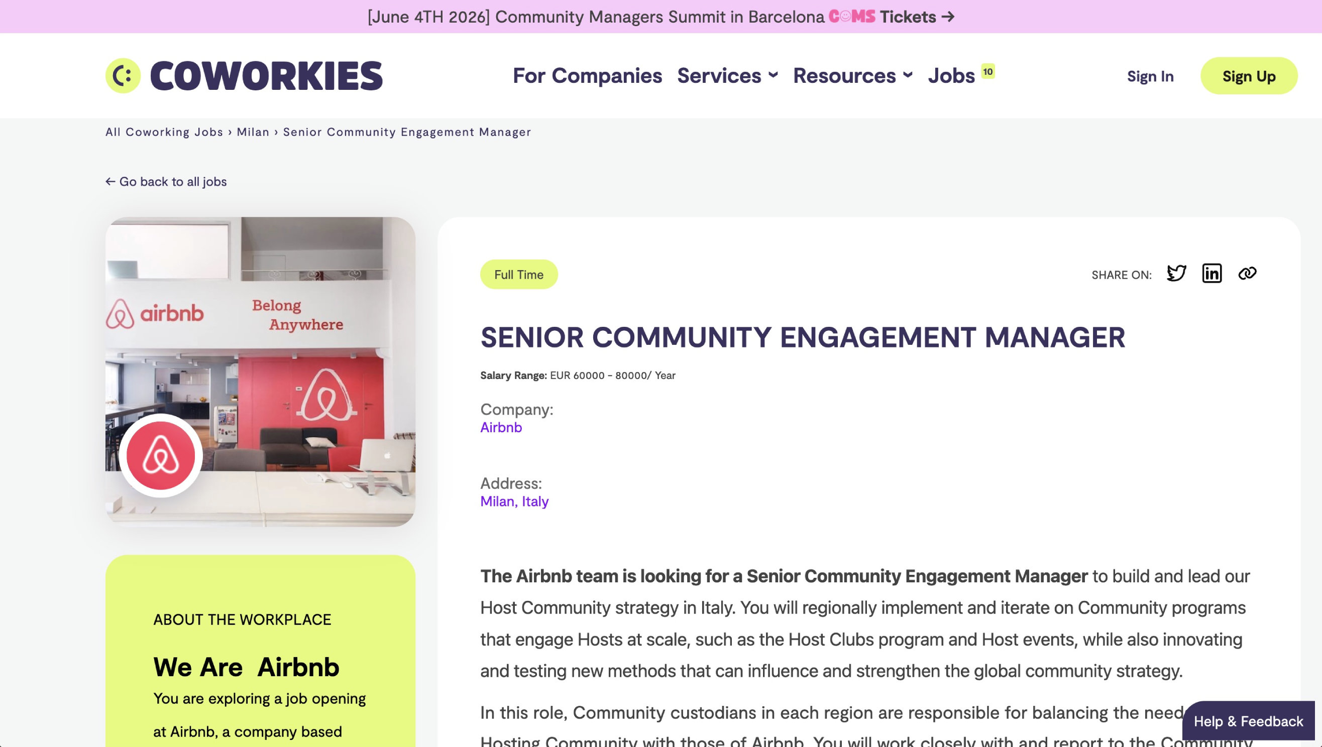 - Jobs can be for startups, projects, or the coworking space itself.