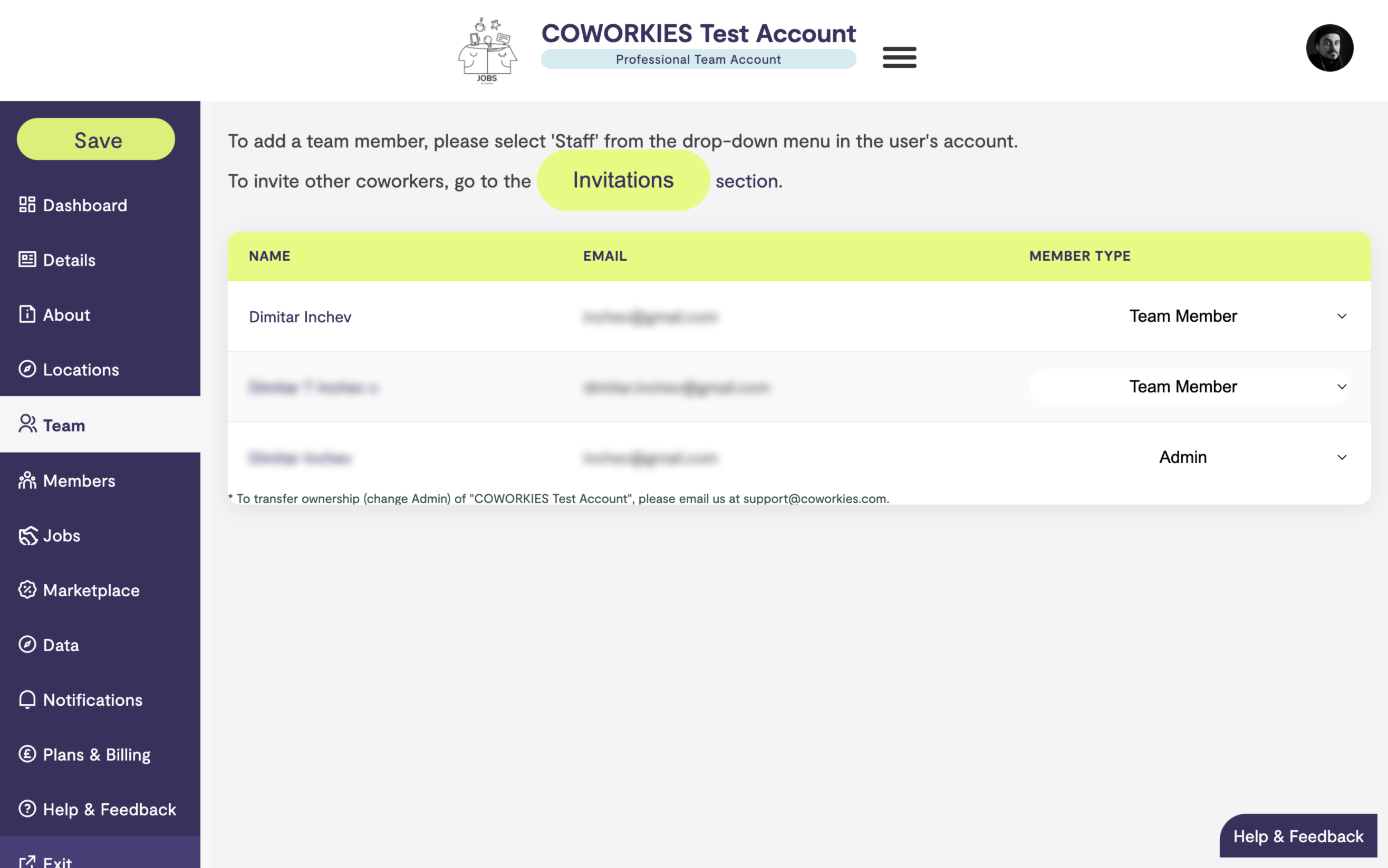 The Members section allows you to manage your community members - the coworkers who are part of your virtual coworking space profile on Coworkies. This is separate from the Team section, which manages administrative staff.
